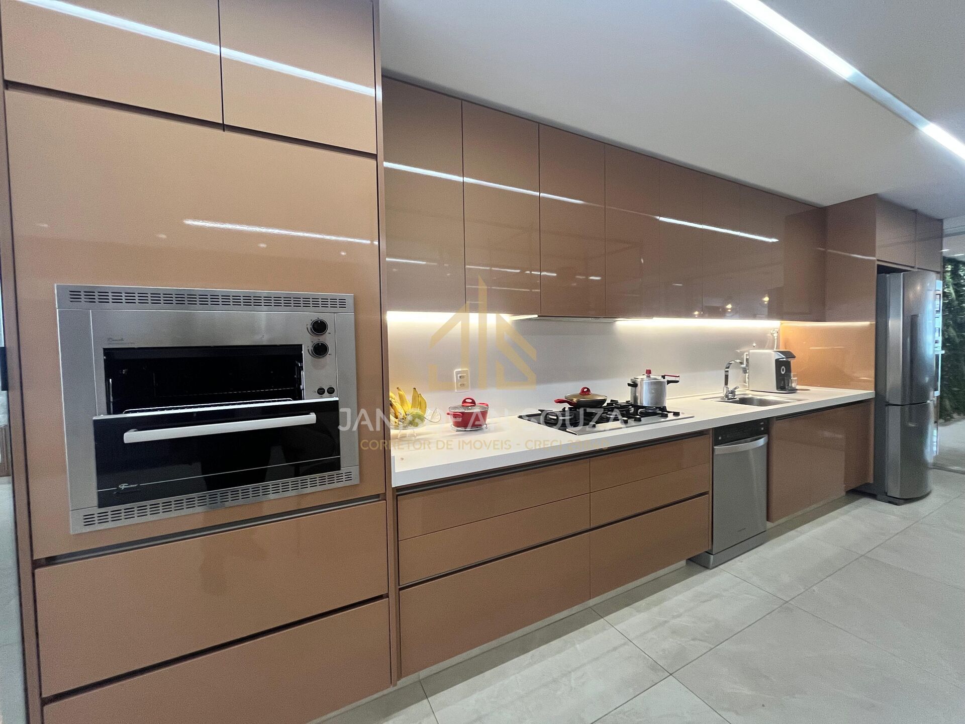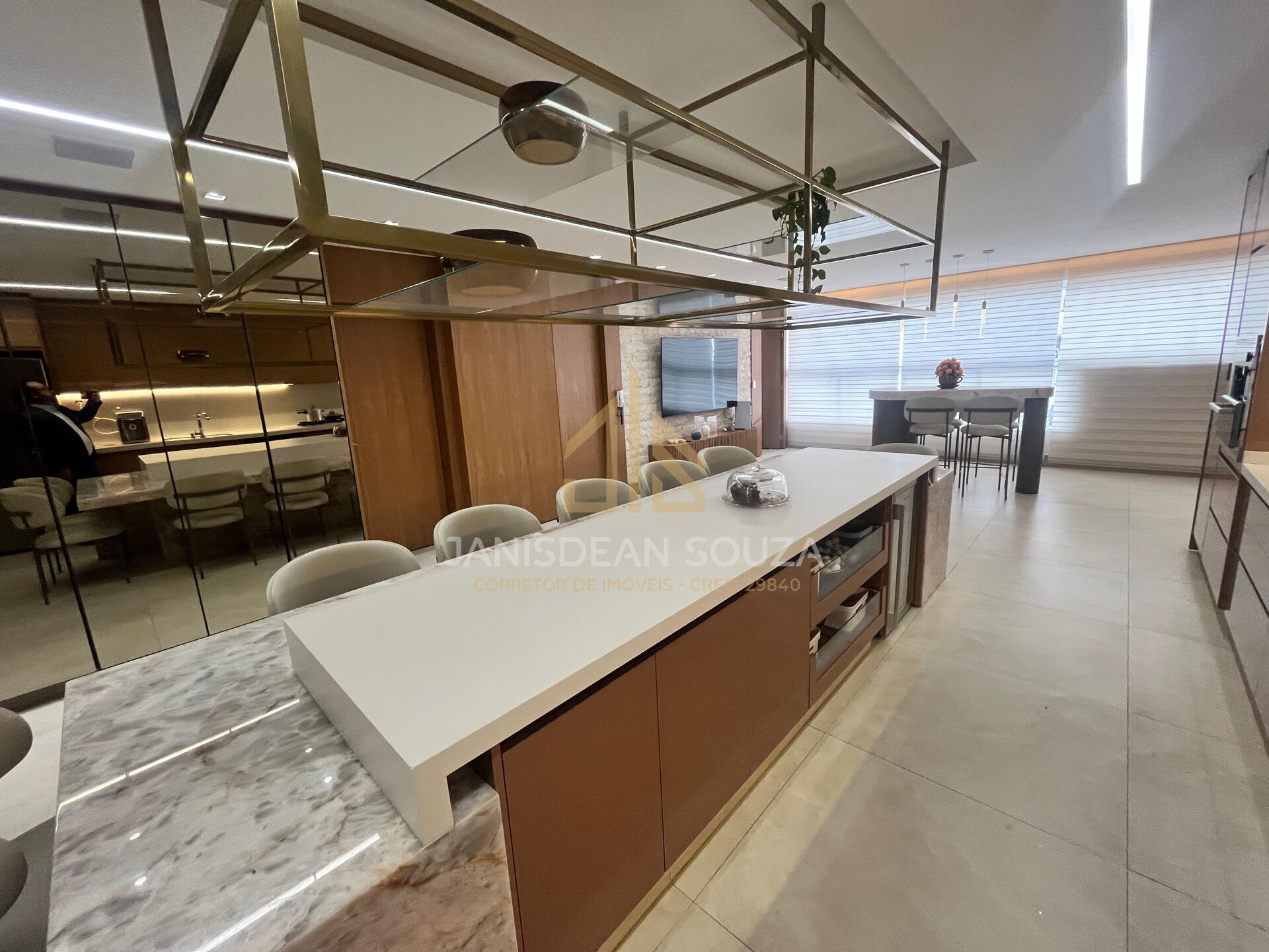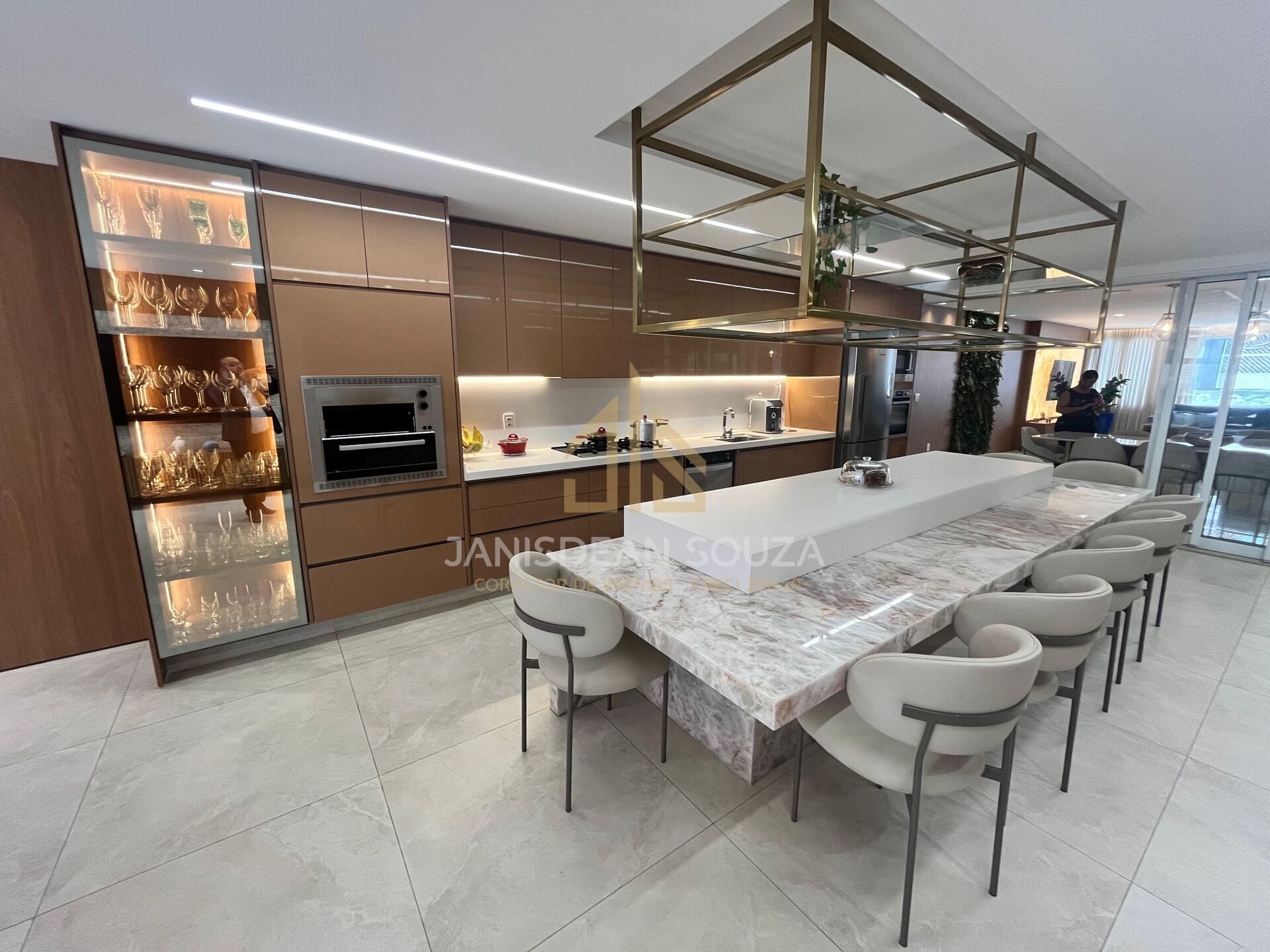 - Cozinha gourmet ampla, bancada em Ônix iluminado, equipada com eletrodomésticos de alto padrão;