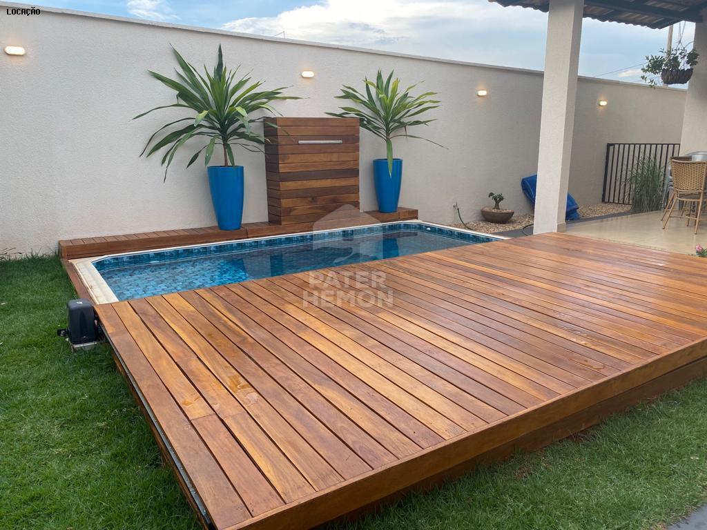 Uma moderna e sofisticada piscina com deck de madeira cumaru, retrátil e elétrico, hidromassagem, aquecimento solar, iluminação em led, cascata.