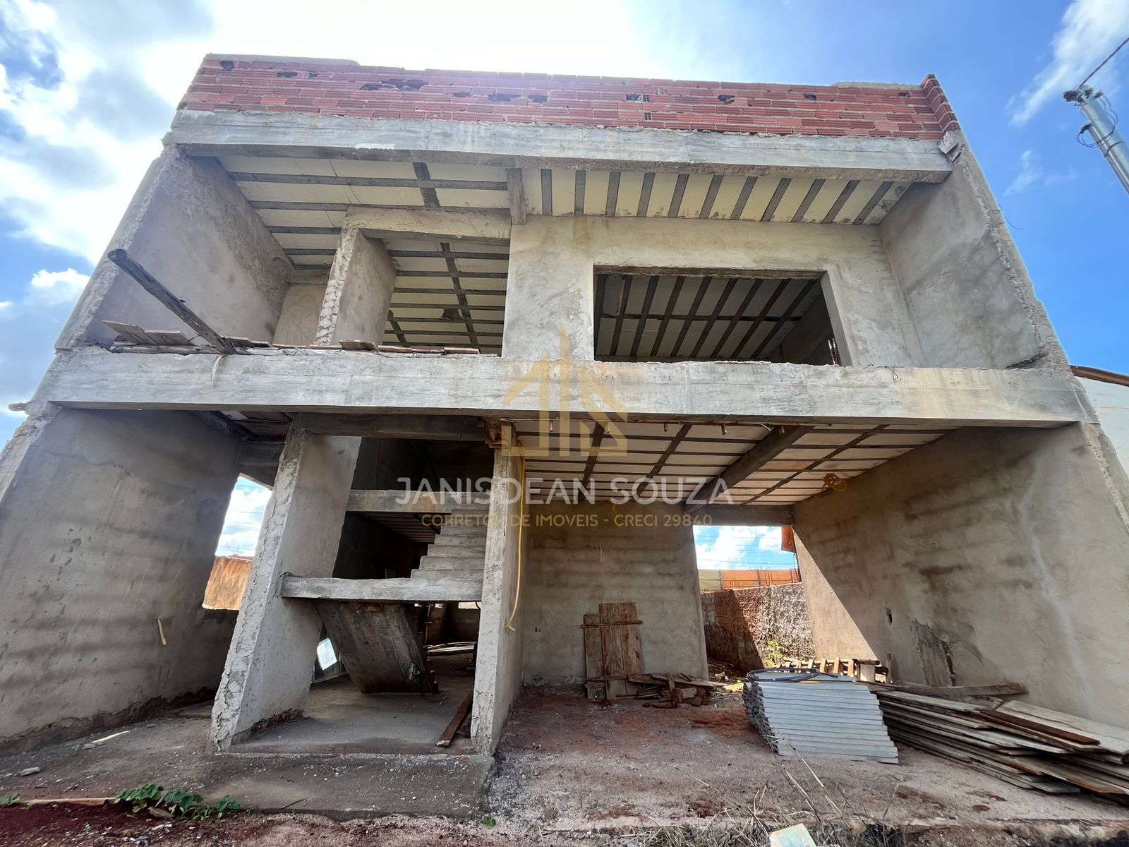 Este sobrado em construção, com 271m² de área construída, está pronto para iniciar a fase de acabamento, permitindo ao futuro proprietário escolher revestimentos e detalhes finais conforme seu estilo.